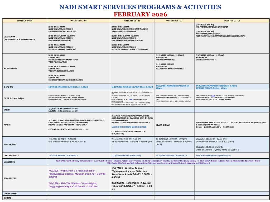 JADUAL AKTIVITI SMART SERVICES BULAN FEBRUARI 2026