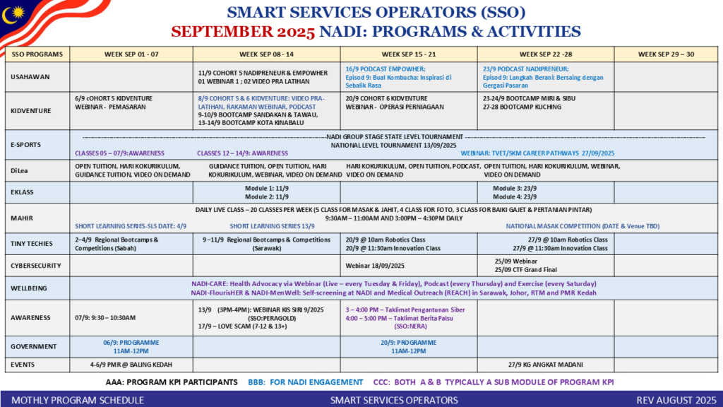 JADUAL AKTIVITI SMART SERVICES NADI BULAN SEPTEMBER